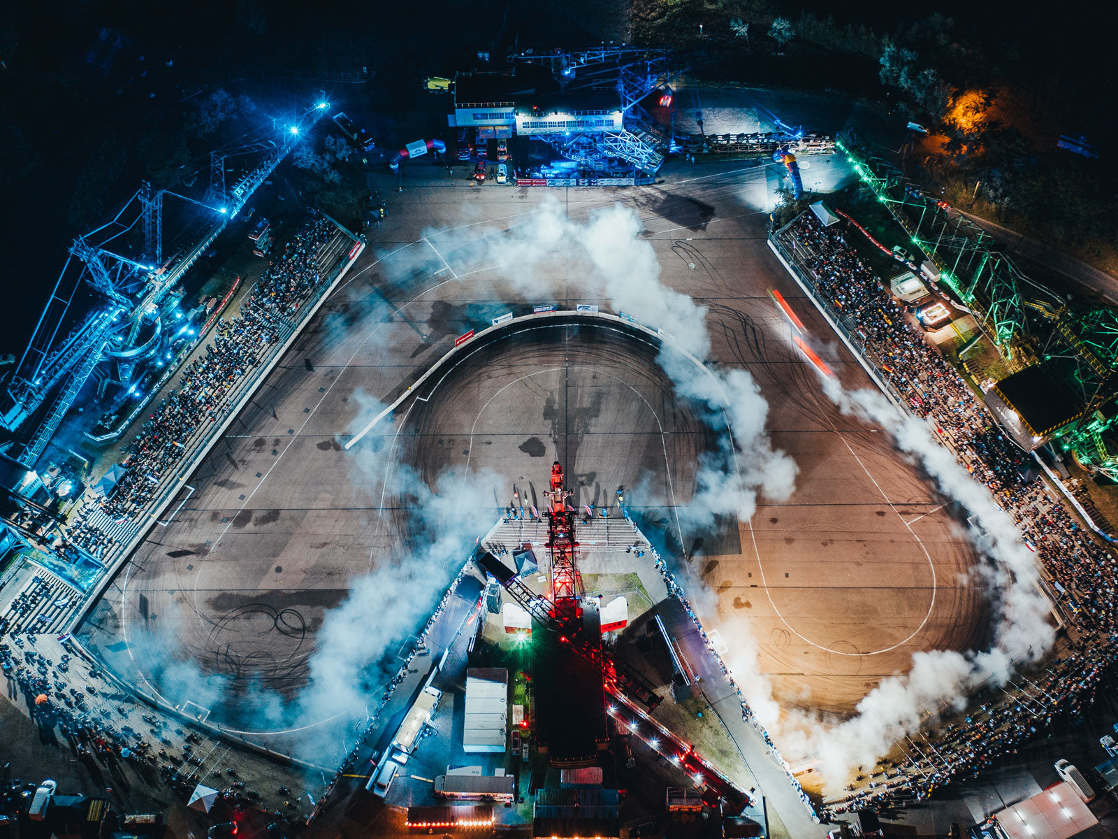 For the IRON DRIFT KING , the steel arena will have a custom-made 14,000 square meter racetrack. It takes almost a whole week to set up the racetrack. With concrete walls and safety fences according to Formula 1 standards, one of the most modern drift tracks in the world is built every year just for this one weekend.